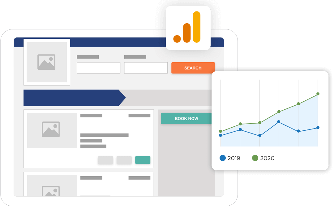 Utilice Google Analytics para realizar un seguimiento y generar informes sobre cada comprador que pasa por su motor de reservas.